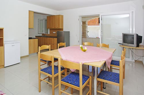 Tři pokoje se sprchou+wc, možnost přistýlky ve dvou ložnicích, kompletně vybavená kuchyň, jídelna, velká terasa s výhledem na moře...